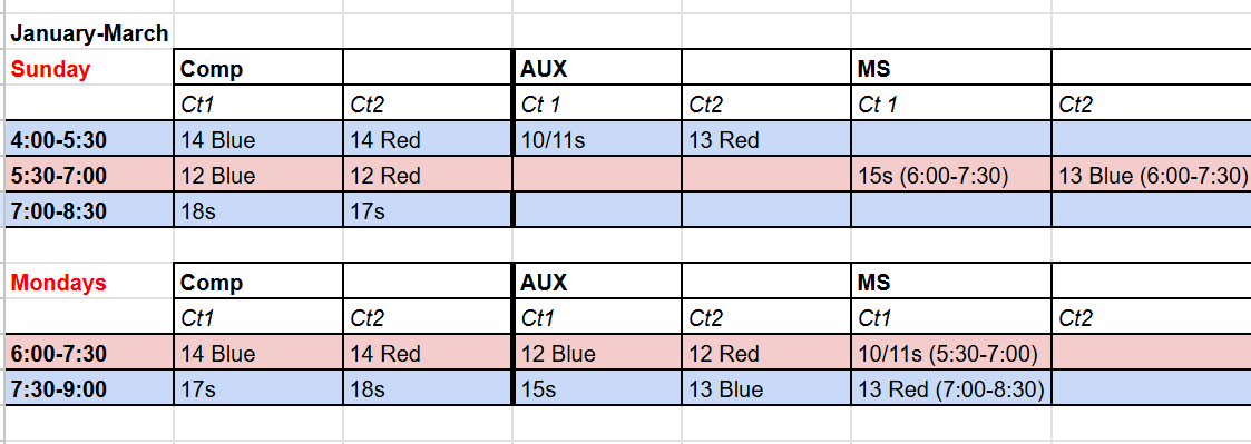 15s-18s (9th-12th grade): 6:00-7:15